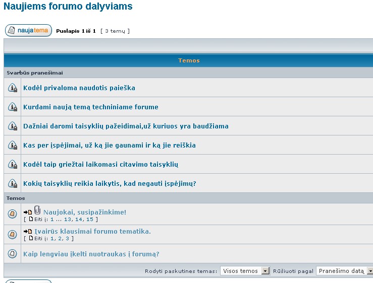| Jūs negalite kurti naujų temų šiame forume Jūs negalite atsakinėti į temas šiame forume Jūs negalite redaguoti savo pranešimų šiame forume Jūs negalite trinti savo pranešimų šiame forume Jūs negalite prikabinti failų šiame forume |