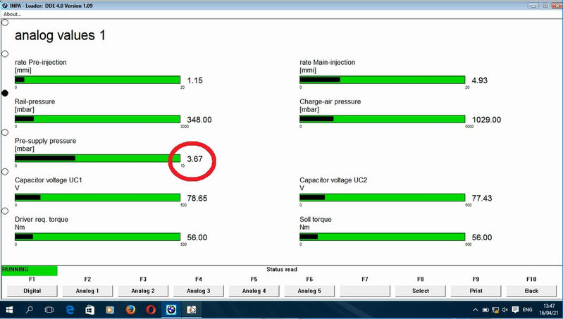 1. Darbine variklio temperatura ant laisvos eigos mag.slegis=3.67bar