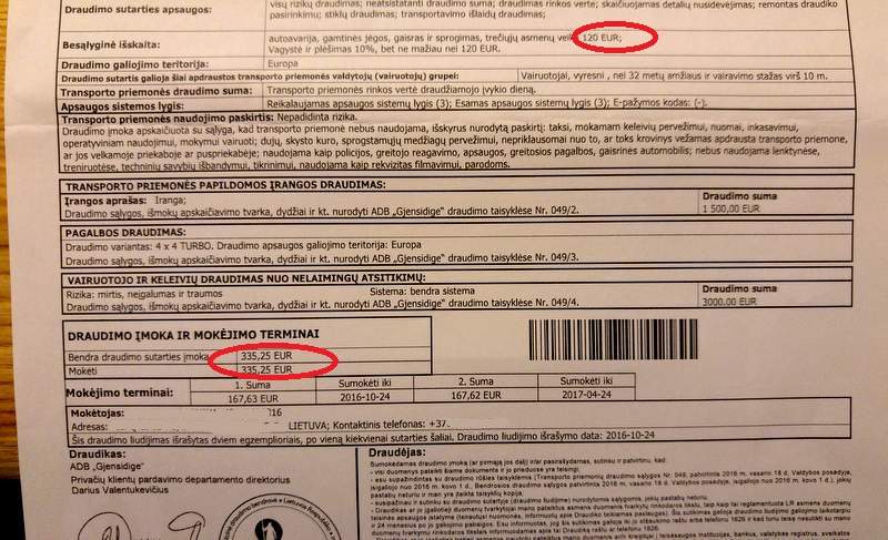 man sekėsi palyginus su pačiu - blogai, casco kainavo 750, francizė 90