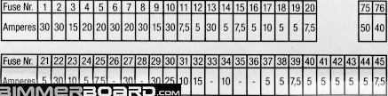 O kas čia neaišku? Išsiimk tą lapelį, prie tam tikro pavadinimo yra skaičiukai (Pvz. ABS Diesel yra 17 ir 30) , tada žiūri į tą dalį, kur yra skaičiukai ir bus aišku kokiam saugikliui kokių amperų reikia (ABS Diesel 17 - 10A ; 30 - 25A) :)