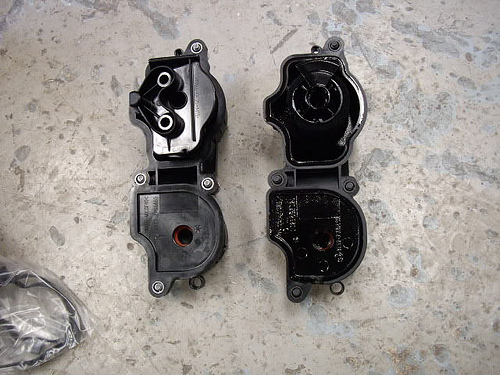 Ne tame esme senas filtras buvo siulinis paskui jie buvo n kartu modifikuoti kol patapo tas tepalo lasu nusedintuvas plastmasiniu. Kad ir kaip ten bebutu galima ta filtriuka mest lauk arba keisti ji i plastmasinio tipo (naujausiais tipas). Esme yra sito filtriuko sulaikyti tepalo lasus, arba nusodinti tepala esanti karterio garuose atgal i varikli. Geriausiai sia funkcija atlieka seno tipo filtras, bet jis turi neigiama poveiki tame kad greit uzsikisa ir paskui pridaro mums visiems gerai zinomas bedas. Plastmasinis filtras praleidzia daugiau tepalo i turbina, interkuleri ir isiurbimo kolektoriu. Ismetimas sio filtro visiskai manau nereikalauja paaiskinimo kas vykta tokiu atvejiu, bet cia kiekvieno asmeniska teise rinktis ar mesti ta filtra lauk ar ne.