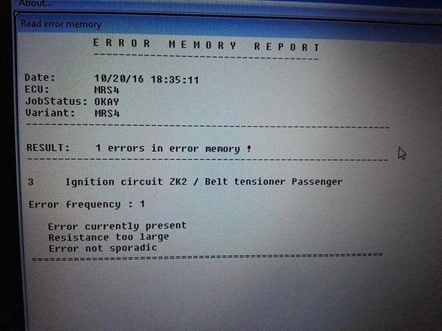 Sveiki. Uzsidege man airbag - pasijungiau diagnostika, rode, kad daviklis keleivio. Atjungiau fiske, su NCS sukodavau, kad nebetikrintu jo. Suveike - daviklio nebetikrina. Bet dabar meta klaida, del dirzo itempejo. Ikeliu foto, bet kaip speju busiu atjunges ne ta fiske??? :D ar suprogramuot reikia dar kazka? ačiū isanksto uz info