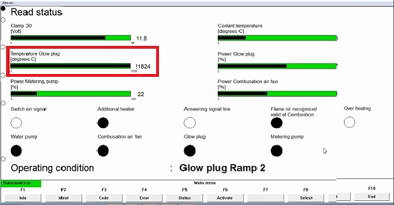 Prie webastos Status rodo aušinimo skysčio temp., įtampą 13v ir juodas taškas " OVER HEATING "