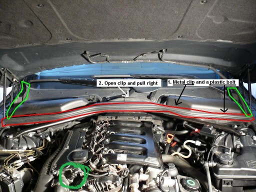 Atsuksi 3 varstus su sesiakampiu,nusiimi dangteli plasmasini priekini ir matai toki vaizda( cia dar tik nuimtas ir pagrindinis viso variklio dangtis, bet tau uzteks ir to priekinio tik)-zaliai apibrezta srauto matuokle,numauk fiskute ir vsio..p.s.ten kas prirasyta ir pripaisyta ant foto-nekreip demesio,cia foto is kitos temos :wink: