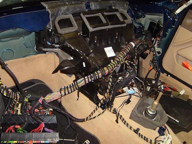 Saugiklių blokas turi keliauti į dešinę pusę, o visi spidometro laidai- į kairę.