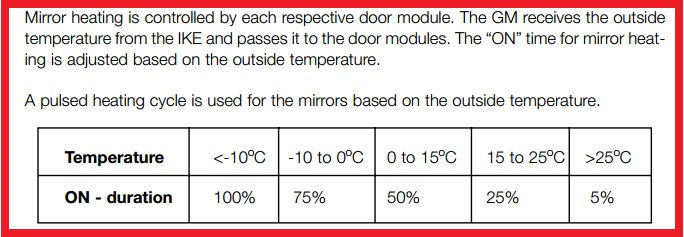 Tiksliai negarantuoju, bet esant zemesnei nei +5*C lauko temperaturai (jei temperaturos daviklis grybauja ir anksciau), aktyvavus R15 kontakta (atidarai duris, degimo raktelis 1 padetyje,.....), automatiskai sildomi isoriniai veidrozdiai (koduojama), priekinio stiklo apipurskimo purkstukai ir duru spynos, plius diskoteka, tai ir nudusina akuma.