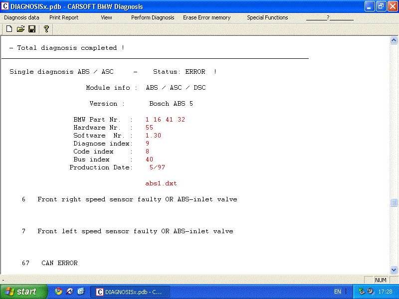 2. Istrinus klaidas - (kaip as surprantu) priekiniai davikliai siuncia signala kad priekiniai ratai stovi. Ko pasekoje asc man stabdo masina, isjungus ASC, pradedu normaliai vaziuoti, pasiekus tam tikra greiti isimeta klaida.