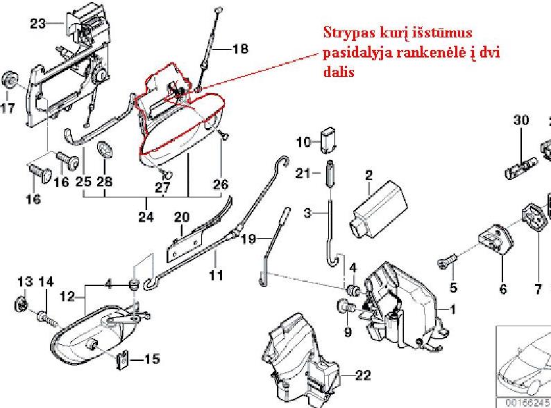 Jei tau lūžo vairuotojo durų rankenėlė(su spyna), tai nepirk su spyna, nes ji bus brangesnė... Gali pirkti ir iš anglo, ar galinę tos pačios pusės (be spynos), nes rankenėlė pasidalina į dvi dalis išstūmus strypą kurį pažymėjau, tada spyną panaudosi savo ir sutaupysi pinigų :wink: