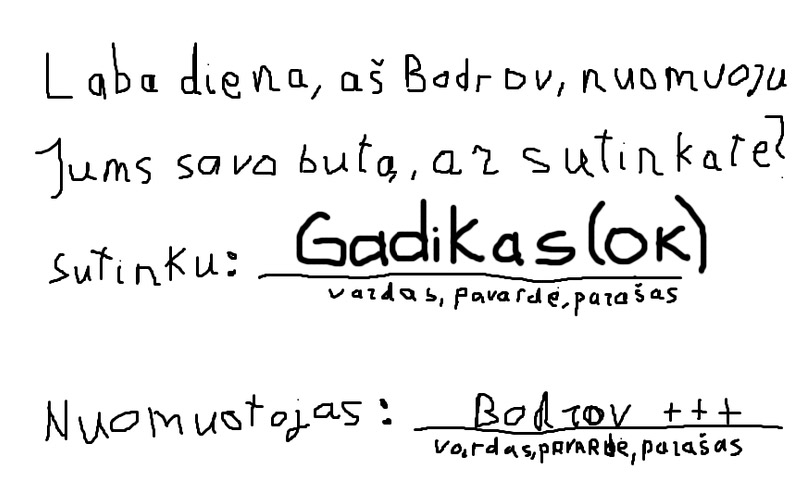 Nu aš jau gavau iš jo sutartėlę, tik vardą pavardę pasikeiskit.