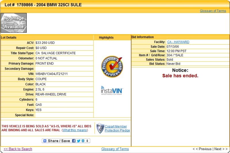 Copart'e nieko nėra. Yra 32 autocheck'e įrašai, gali už 29,99 USD nusipirkti: http://www.autocheck.com/consumers/gate ... o?siteID=0