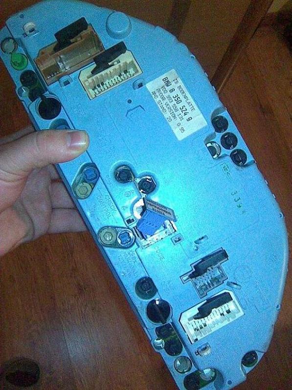 kadangi nuo 750 skydelio paieškos buvo bevaisės, nuvežiau Jaroslavui remontuoti, bet skydelis buvo neremontuojamas. pasirodo visų E32 skydeliu nugarėlės vienodos, tik vieną schemute reikia perdėti. taigi, už praktiškai simbolinę sumą nusiperkate skydelį, "naujame" rekomenduočiau pasikeisti lemputes, pakeičiate schemutę (visas softas, rida ir tt), surenkate, ir į kelią.
