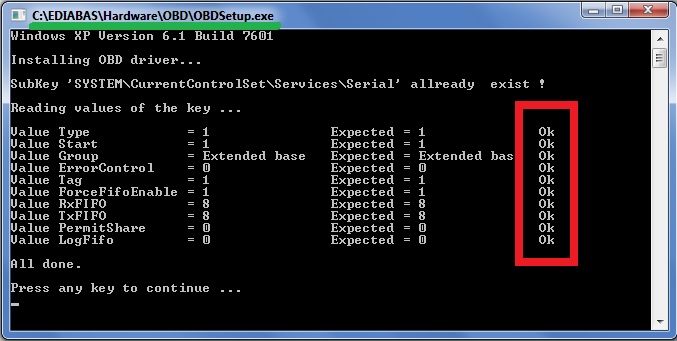 Paleidus OBDSetup.exe turetu but visur OK, jei ne redaguoji regisrta ar panaudoji jau gatava reg failiuka...