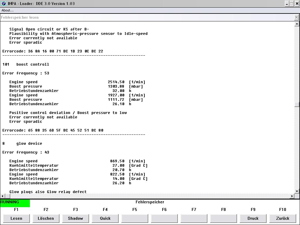 automobilis e60 3l dyzelis, 160kw. Meta tokia klaida, kurios screenshotas pridetas. Manau del jos, paspaudus Status ir bandant ziureti gyvus automobilio parametrus po 5-10s visi rodikliai sukyla iki maximumo ir viska rodo su sauktukais. Nieko negali pasiziureti kaip veikia, nei kaip turbina, nei oro srauto matuokle, nei rpm ir pan. Gal kas zinote ka ta klaida gali reiksti?