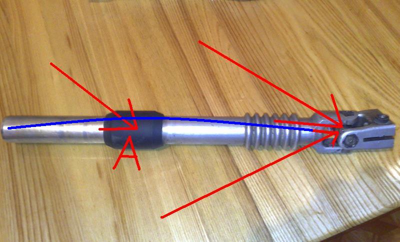 Problema/klausimas: Sveiki,ar teko kam restauruoti arba keisti vairo kryzme?(rodykle foto) isidejau srotine,vairas sukinejasi lengvai,pati kryzme dirba graziai,bet aliuminis korpusas yra truputi lenktas(melyne linija) ir kai suku vaira vietom girdisi variklio garsas,guma A vietom neprisispaudzia prie kebulo gumos,girdejau kad kazkur jas restauruoja,nes krastoi 600 lt.koplektas :lol: jei susiduret kaip kur kas kiek kainavo? :wink: