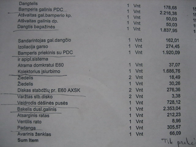 Vakar teko matyt E60 uzsienietiskais nr, is Olandijos, bet patrauke demesi, jog ant galinio bamperio vienas likes parktronikas, kiek pamastes kokiu atveju gali reiket isidet tik viena parktronika, islipau nueit paziuret i priekini bamperi - ziauriai ispjautos priesrukines lempos :shock: dabar jau ir man neramu ziuret kaip pinga sie automobiliai ir kyla paklausa detalems :^o