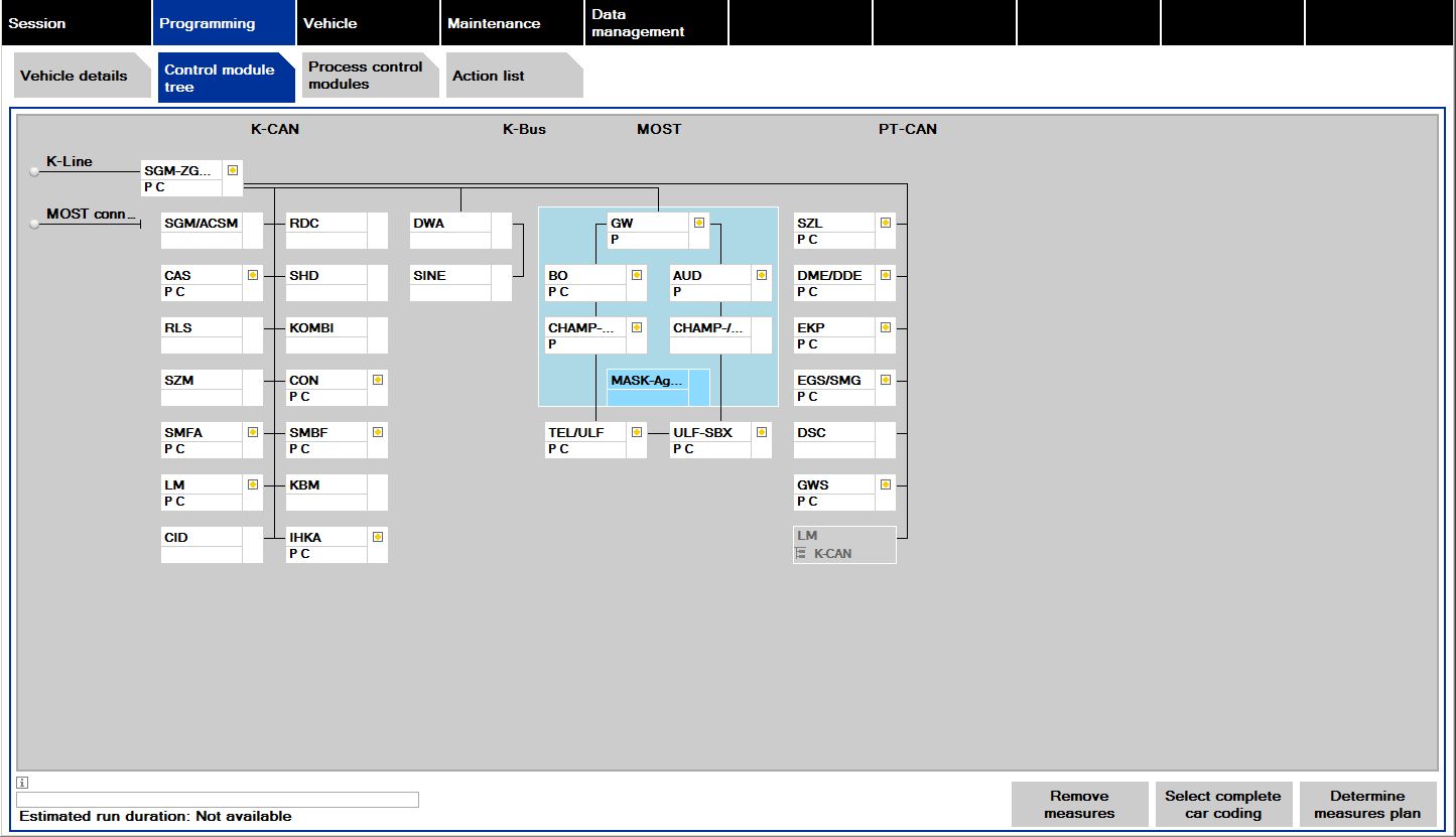 Su tuo paciu kabeliu naudotant ISTA prisijungti prie visų modulių pavyksta (komunikacijų schema iš ISTA prisegu).