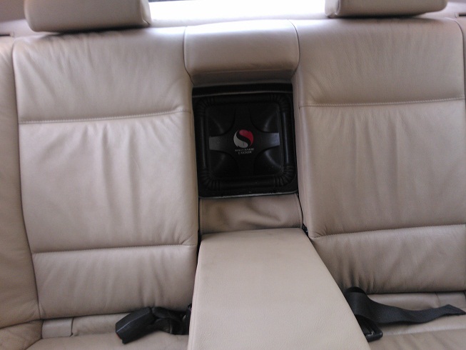4) Dešinėj ties pakeltu atlošo kraštu išimi kamštį ir iš bagažinės prakiši laidus;