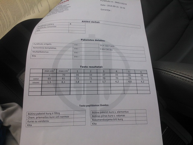 Siandien pries dedantis sau 3.5d purkstukus, buvau juos nuvezes i dizrida patikrinimui, po patikros gavau stai toki lapa su skaiciais. Sake kad purkstukai dar tikrai visi geri. Su tom diagnostikom oi kiek kartu buvau issidures, daznai jei purkstukas nera visiskai gatavas, sunku pastebet, geriausia yra issimtus tikrint.