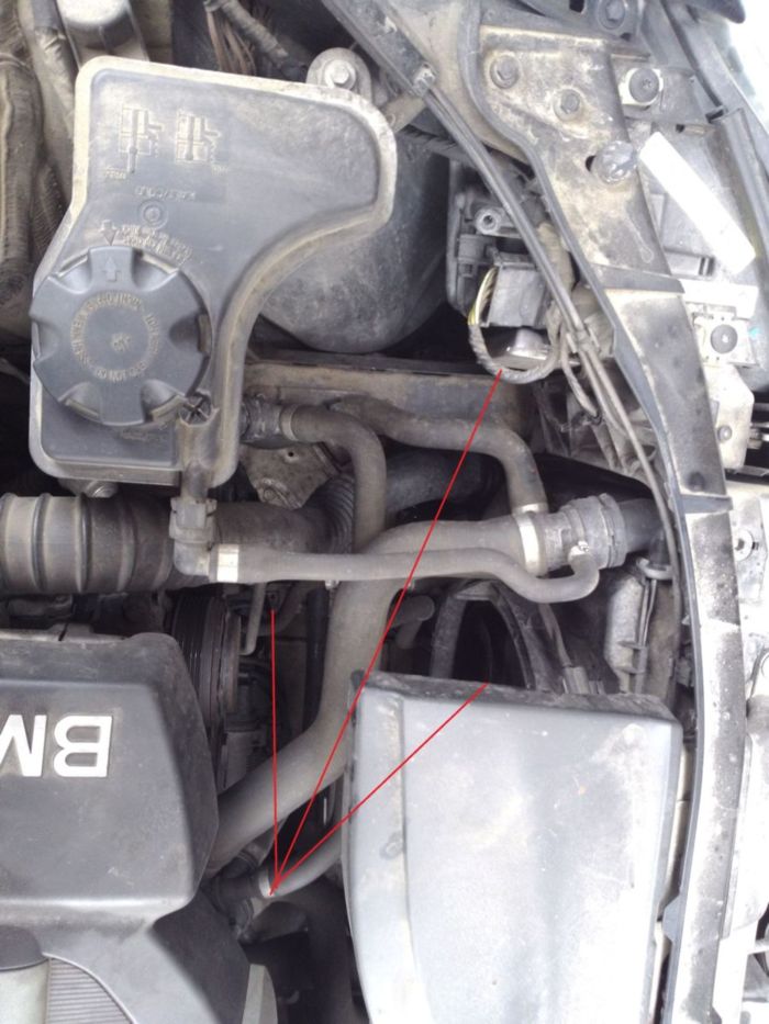 Pastebejau, kad po nakties atsiranda demes ant zemes,kazkas lasa, kas tai nezinau. Paziurejau po kapotu, tai labai nesvaru yra sitoj vietoj kur raudonai pazymejau nuotraukoje.