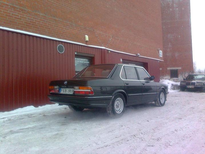 E28 86m. 2.4TD i mashina buvo iki manes per 4-5m. investuota 12000lt buves sheimininkas taip sake, kilometrazas 8000 km. po restauracijos. Pirkau 2010 06 dauzhtu priekiu susiremontavau uzh 2000lt iki shios dienos buvo apsiutas vairas, begiu rankenele, pastatytas originalus BMW E34 magnetola su CD cheindzheriu, padarytas pilnas automobilio antikorozinis. Per zhiema pasiganyt ishtraukiau du kartus. Dabar toliau miega sausam garazhe gaila chrominiu bamperiu uzh 1500lt