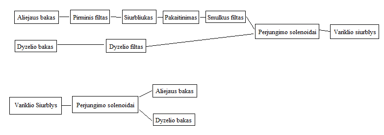 pagal tavo parodytą schemą aš buvau pasidaręs.dyzeliui pastačiau atskirą bakelį ir grįštama i bakelį, aliejui palikau kaip priklauso su grįštamu į baką.tai man kažkokiu mistiniu budu saliarka pradėdavo drumstis ir su oru eidavo :oops: