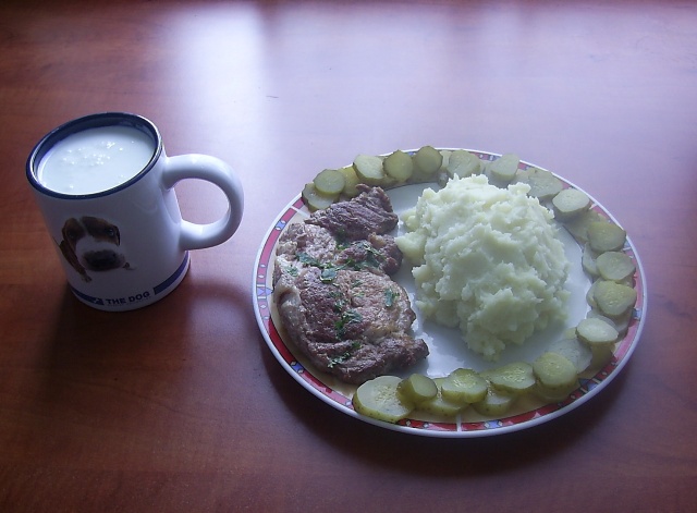 Šios dieneles pietus,kiaulienos karbonadas,bulviu košė,kefyras