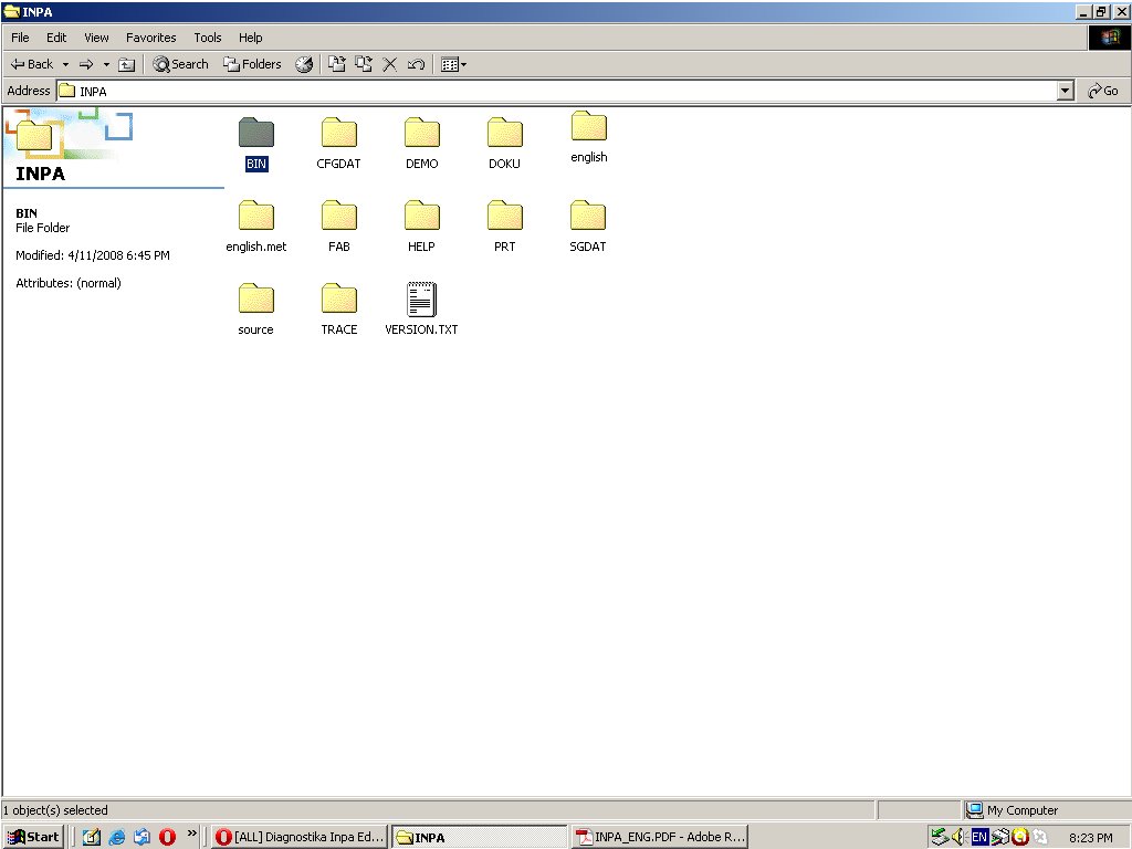 Galvojau bus aisku :) Cia paskutinis tavo variantas. Paemiau vokiska INPA, bet ji aisku versta i angliska. Pagrindinis meniu angliskas, prie M52 variklio prisijungus dauk maz viskas angliskai isversta. O prie M47 dde3 (E46) variklio prisijungus viskas vokiskai. Tai tame ir klausimas, ar pas visus taip? ar kazkokia versija/failas padarytu ir si varikli su anglisku vertimu.