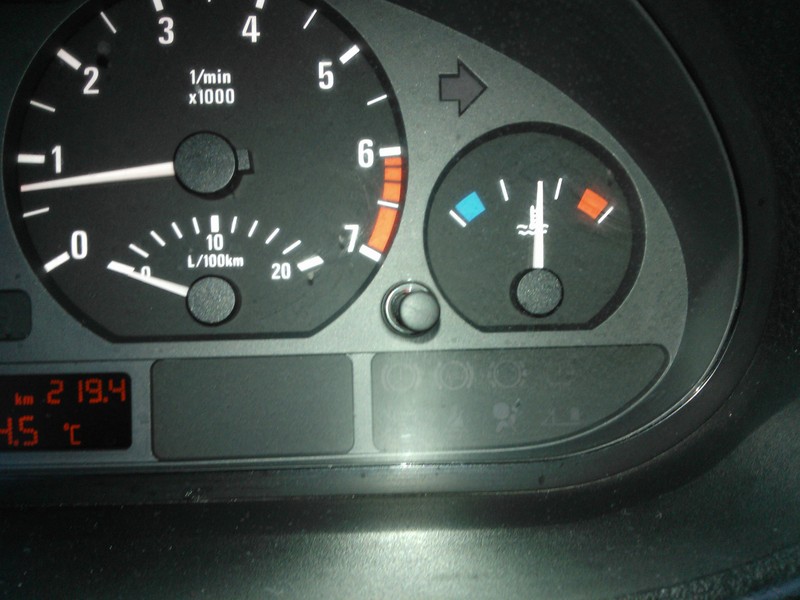 Problema tame kad ryte važiuojant į darbą, t.y. kažkur 5 min normalaus važiavimo ir 15-30 min. 1-2 bėgis kamštyje matau kad temperaturos rodykle šiek tiek pakyla virš vidurio (nuotraukoje), toliau nebenkyla. Pirmą kartą pastebėjau kai buvo nusiurbtas 1litras antifrizo (matavus apie 20c buvo likę) ir ipiltas koncentratas. Kitą dieną (gal po dienos, bet daug nevažinėjau) pastebėjau šitą dalyką, ir pažiurėjus antifrizą, jo buvo ties min (servise sakė kad taip ir turi but nes koncentratas vandenį nugarina). Tai dapiliau kažkur apie 800 ml. Paskui nebedingo.