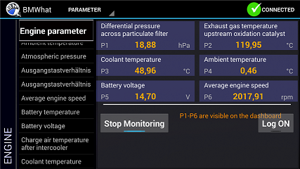 Su telefoniniu apsu BMWhat galima live data dpf filtro matyti