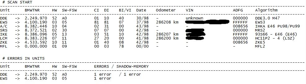 Kazkodel bmw scanner 1.4.0 nenuskaito mano dde, kiek perziurejau logu tai tik viena karta parode, kad yra klaida, o siaip nieko susijusio su dde nerodo. su inpa/dis/carsoft/autoboss viskas gerai. Manau cia kabelio problema gali but.