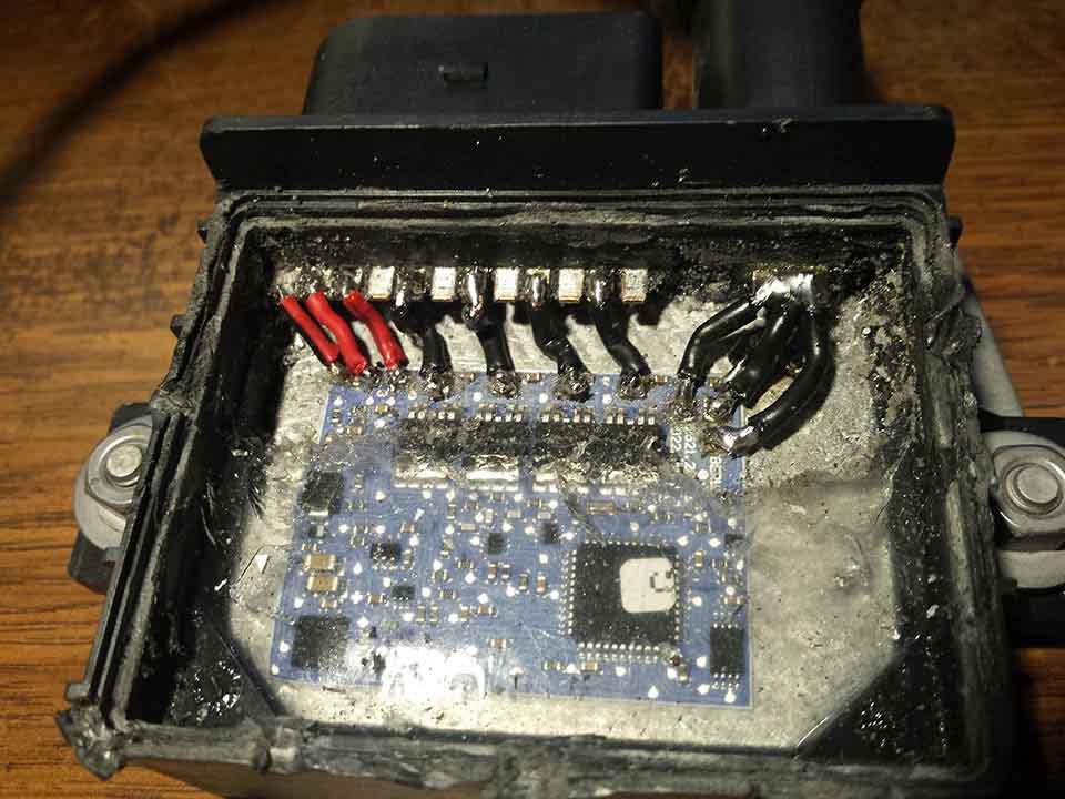 Išsiimu rėlę, pamatuoju su testeriu tarp pirmo cilindro zvakės kontakto ir pagrindinio +12V kontakto varža ~8MOm kituose ~6,8MOm, pamatuoju žvakes visu varža vienoda, sujungiu viską "oriniu montažu" jau 5 žvakės kaista, pirmo cilindro žvakė ne. Apkeičiu žvakes, pasitvirtina kad problema relėje. Kadangi relė jau pasmerkta ir žingeidumo vedamas pradedu skrosti rėlę, atsidarė pakankamai lengvai: