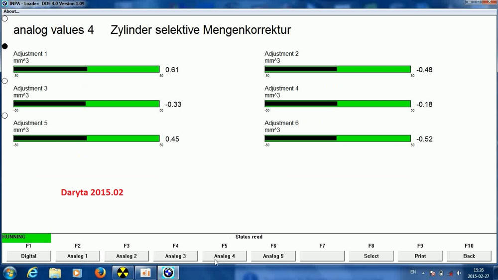 5 teste matoma stumokliu kampinio greicio israiska cilindruose, jo metu isjungia kompensacijas ir purkstukai visi purskia standartini vienoda kuro kieki ir jei bus idealus purkstukai, nebus jokiu vibraciju (pataise siomka)