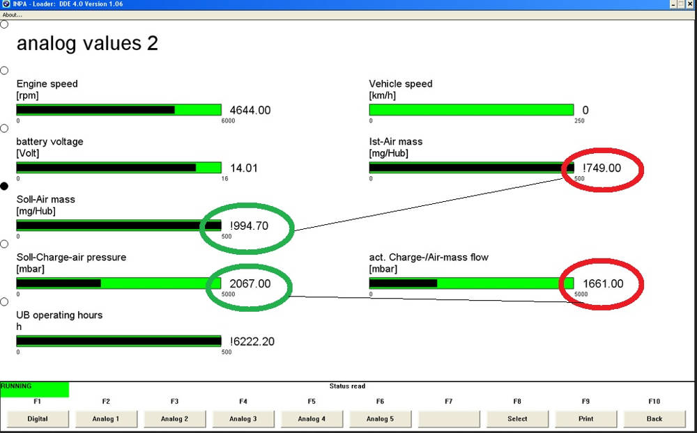 Vaziuodamas nufilmuok su kokia oCam ar kita programke ir palygink tuos davinius, zaliai apvesta -DDE kompas tokius parametrus nustato, raudonai- tokius parametrus turi faktiskai (oro mase ir turbos uzputimo slegis)