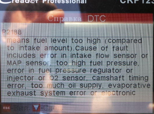Klaidos kodas yra per riebus kuro mišinys dirbant laisvomis apsukomis. Varikliui dirbant laisvomis apsukomis Taip pat jaučiasi ne pilnai sudegusio kuro kvapas ir iš duslintuvo eina dūmelis. Oro filtras pakeistas.
