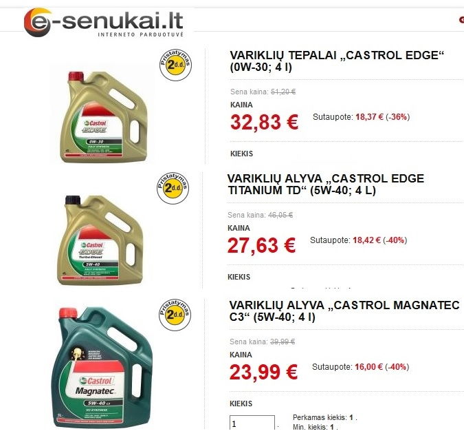 Nes parduotuvej kaina apie 100 euru 5 ltr. Degalinej apie 110 euru. Castrol pigiau kainuoja nei Shell.