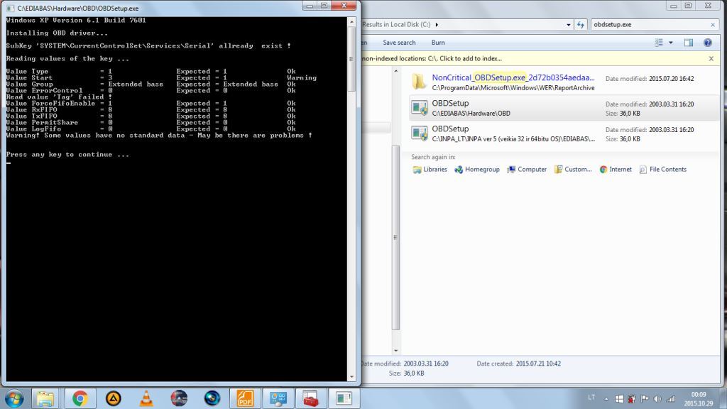 Paleisk OBDSetup.exe failiuka ir pasiziurek ar visos reiksmes OK