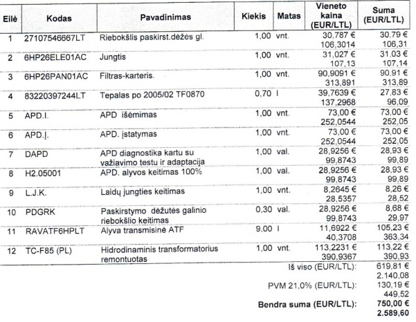 maniškis xdrive, tuo pačiu pakeisti ir paskirstymo dėžutės tepalai, tai iš bendros sumos reikia minusuoti 1, 4, 10 pozicijas