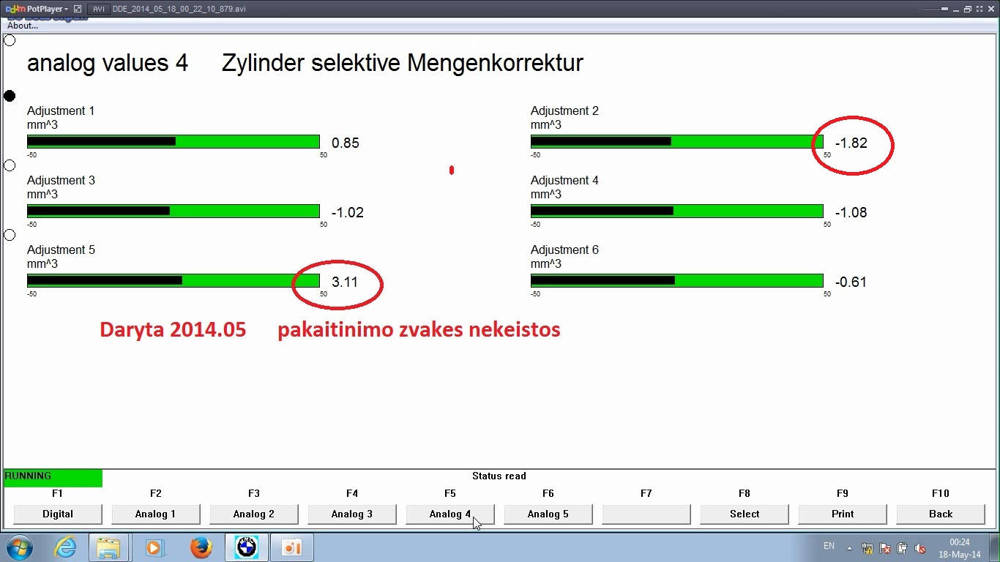 kad tolygiai variklis suktusi (nebutu "maskatavimosi" ir vibracijos), DDE blokas paskaiciuoja ir ipurskia didesni kieki kuro i mazesni greiti turincius cilindrus, o i tuos cilindrus kuriu greitis didesnis -kuro kieki sumazina, vienu zodziu stengiasi palaikyti visuose cilindruose vienoda stumokliu greiti (siuos testus reikia atlikti prie darbines variklio temperaturos ~80-88*C, nes ant salto variklio itakoja neveikiancios pakaitinimo zvakes)