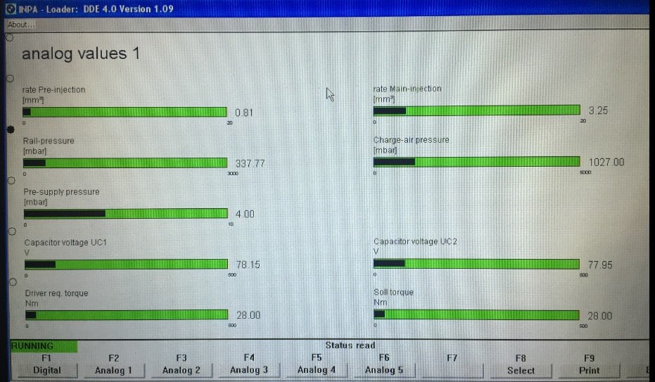 vakar sugalvojau pakoduoti keleta sviesu funkciju su NCS ir tuo paciu su INPA prachekinau klaidas. Tai uztikau tokia klaida 4704 pre-supply pressure monitoring. Istryniau klaida, lengvai pavazinejau, klaidos neatsirado. Tada nuvaziavau atokiau ir praspaudziau "tapke" iki dugno, kad apsukos sukiltu iki ~4k ar daugiau. Tada ismete sita klaida vel. Dar nufotkinau gyvus parametrus ant laisvu. Nelabai suprantu tuos rodmenis, bet slegis normalus lyg ir magistraliniam siurbliuke ar nelabai? Ir beja, kas susidure su situo reikalu, kas vyksta del sitos klaidos? Trauka sumazeja ant aukstu apsuku?