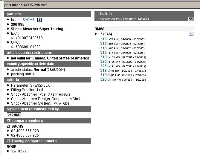 Gamintojas tau duos tai, kas parasyta kataloge. patikek, skambinta, klausineta. Nesugebejo atsakyti man, koki amortika reik man pirkti i preikine maniskio E46 pakaba. Atsakymas: nu katalogas rodo toki, ir toki. Nu dar sita galima det. Zodziu, dedasi visi, ka turi ant pardavimo pagal kataloga.
