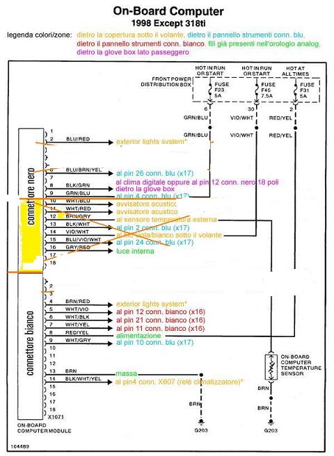 White/Violet and White/Yellow wires: connects OBC to data link system. This system integrates most of the electronic boxes such as ABS, Cruise Control, EWS, ZKE, DME, OBC, etc.